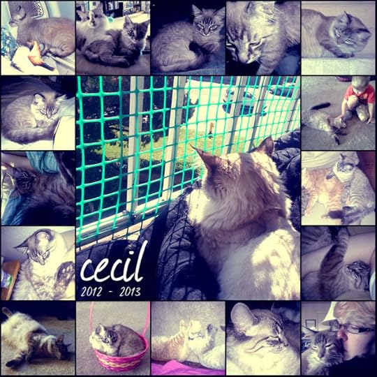 I held Cecil while they put him to sleep. He is not the first pet I've had to do this with, and yet for some reason, it was the hardest and I'm trying to figure out why that is. I wonder if it's because he was so young--a year and a few months old--or maybe it was because it happened so suddenly and so out of the blue, and blindsided me during an already chaotic time when I really needed him. I had just rehomed two of my other cats because we had to move after my landlady passed away. Cecil was the one I chose to keep, because he was my darling, my best friend. I am not used to being home without him near me, in my lap, near my feet, on my shoulder, somewhere within sight.