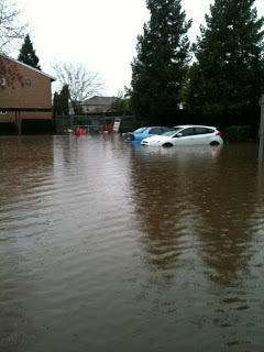 It's been raining like crazy the last few days. This morning, my mom's apartment complex (about a mile from my house) looked like this: