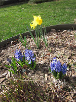 I took this photo on Easter, two weeks ago. By now, those small shoots in the front have grown much higher, the daffodils have faded and tulips have bloomed nearby.