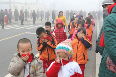 BINZHOU, CHINA – DECEMBER 23: (CHINA OUT) Pupils cover their noses in Binzhou, China. (Photo by ChinaFotoPress/ChinaFotoPress via Getty Images)