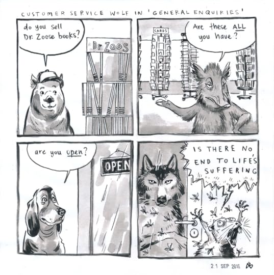 Dat gezegd zijnde, in de boekhandel is iedereen meer dan welkom, want zonder klanten — hoe gek hun vragen ook mogen zijn — zou er geen boekhandel zijn.