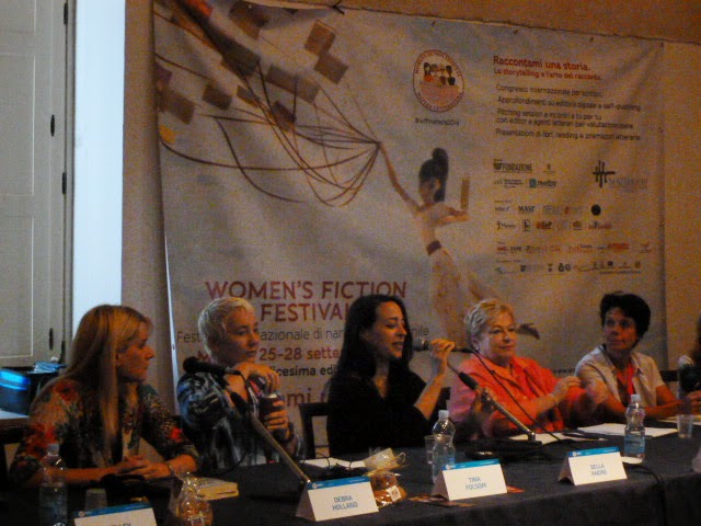 Another article of mine on Impakter magazine, an interview of best-selling author Elizabeth Jennings who also founded the Women's Fiction Festival in Matera eleven years ago. I attended this year's Festival and had a chance to interview her - she is married to an Italian and lives in Matera (see photo below, she is presiding one of the discussion panels, surrounded by writers, from left, self-pubbed American authors Debra Holland, Tina Folsom and Bella André).