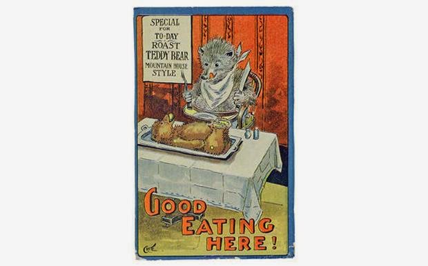 Poster produced for the marketing campaign of the Georgia Billy Possum CompanyWho would want to eat a teddy bear?Writer Jon Mooallem, in a vivacious TED talk seen by over half-a-million people, suggests that how we view animals - our "ecological imagination" - has real consequences for a species' chances of survival. With about half of known species headed for extinction by the end of this century, which ones would you bet on to survive?