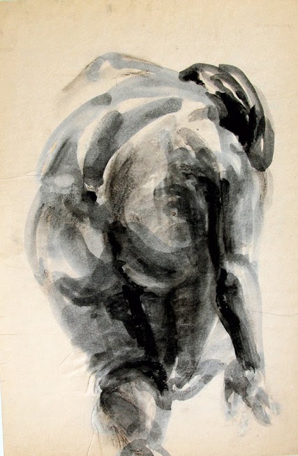 He managed to climb out of the depression and late in his life,in the 1990s, he started painting again. And the stuff he produced this time is eye-catching and much more personal. For example, this semi-abstract nude: