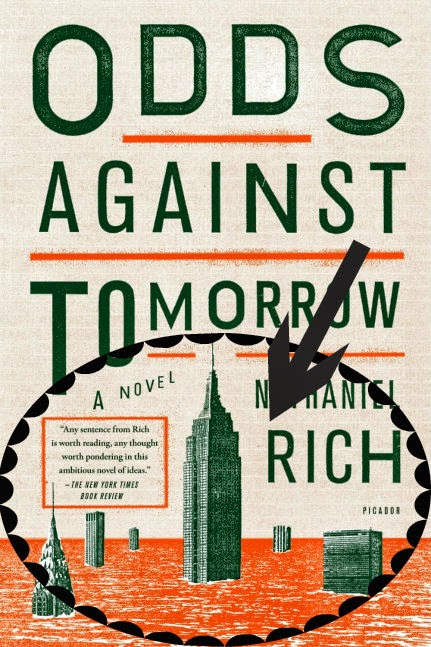 Take a close look at the book cover (I've added a circle and an arrow) and see what New York could look like in a not-so-distant future after yet another hurricane - because now we know without any shadow of a doubt that extreme weather events will hit us more and more often...