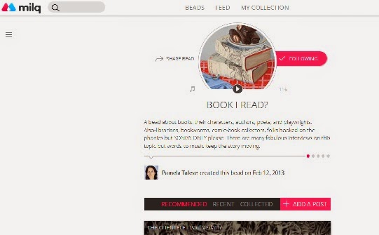 Instead of a timeline or feed or wall, the way you have it on Facebook, or picture boards like you have on Pinterest, you get "beads", i.e. topics where you can upload your find, whether a video, an article, a song. Their landing page looks like this (my screen shot):
