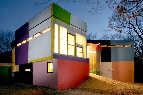 To start with, let me show you a good picture of the "Bioscleave House" on Long Island, NY (this is the one published in the NYT) and not the "artistic" rendering that I used on ReadWave to illustrate my piece. This, the first building of its kind in the US, is also known as the "life expanding villa". Note the bold, contrasting colors...