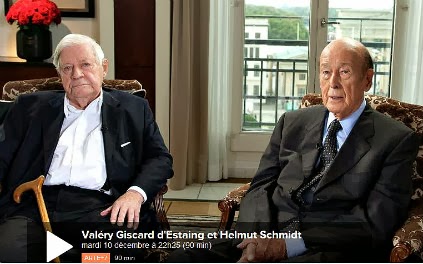 2. my screen shot of Helmut Schmidt and Valéry Giscard d'Estaing on Arte TV. You can see their talk here.