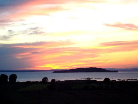 Then drive over to the near-by lake and go to Massimo's restaurant, nestled in the hillside between San Savino and San Feliciano, both old medieval villages on the lake. But in my opinion the best time for Massimo's is at sunset, and that's what we did. We drove out just as the sun was sinking, here it is, behind the Isola Polvese, the largest of the lake's three islands:
