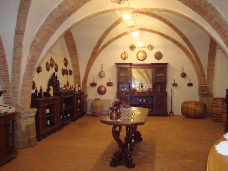 The Order of Malta actually owns a lot of wine-producing land around Lake Trasimeno and also up North in the Friuli region, around Rocca Bernarda. There's a broad range of wines on offer that you can try at the bar before you decide which one to buy - white and red and even bubbly, starting at very cheap prices (€4 for the local Grechetto and Monterone) and rising to €25 and more for the world-class Rocca Bernarda wines produced in the North.