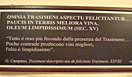 Roughly, it reads: "Everything is made more abundant thanks to the Trasimeno...Few places produce a better wine, and the oil is particularly pure."