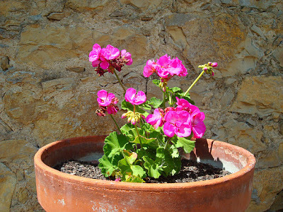 A walk in the garden was certainly a Godsent for me. Look at the lovely flowers blooming here, in Umbria, the green heart of Italy, like this brand new geranium peeking out of its pot: