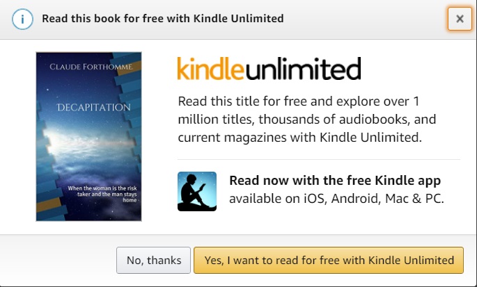 Hello Claude Forthomme,They recommended a book to me...My own book! Yes, it's not a joke. It's my own work, the latest one, just published, a novella (think of it as a short novel - just 50 pages, a great read when you wait for the dentist or stand in line at the Post Office!) Hilarious.