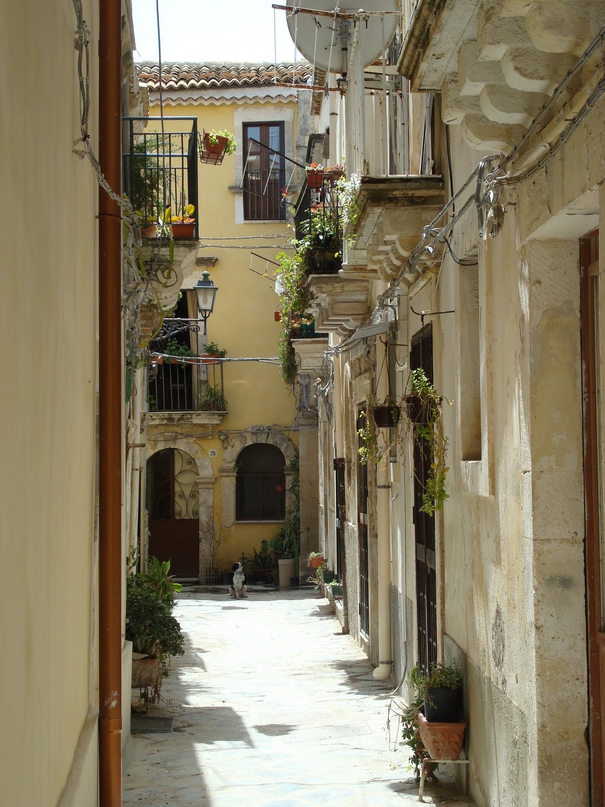 A forbidding medieval fortress, right in the middle of the old town! The museum was the home of the Bellomo family for centuries before it was turned into a city museum around 1914. Alas, the museum held no family mementoes for Tony and, disappointed, he wanders down an old narrow street like this one: