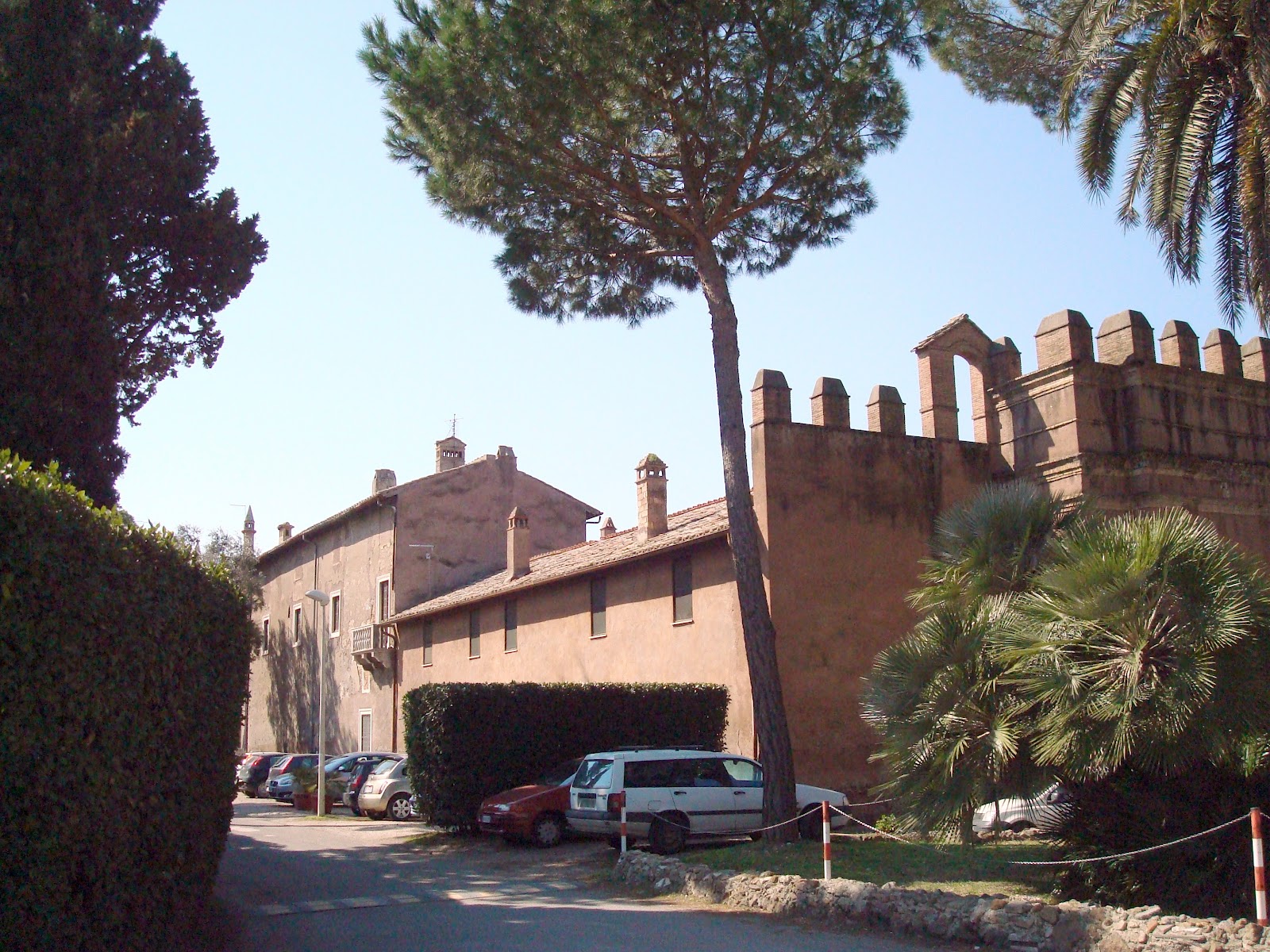 This is the heart of the ancient Renaissance villa-castello della Magliana, as it is called. Restored by the Order of Malta, this part of the hospital is used to house the administration offices and a school for training nurses and voluntaries. The flag of the Order, a white cross on a red background, floats near one of the entrances: