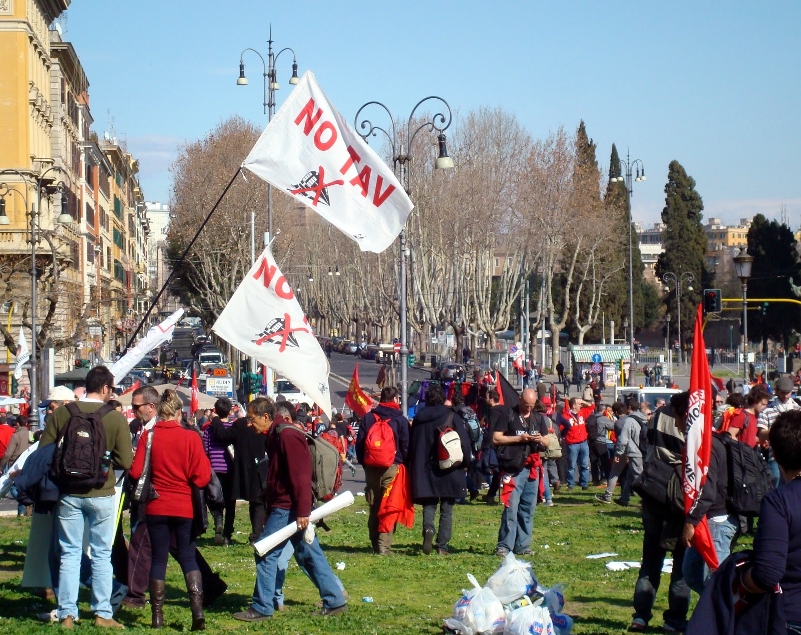 There's a pile of garbage dumped in the forefront of this picture, see it? Admittedly, this time the mess was relatively contained (as the noise was) but still...Everytime there's a mass protest organized in Piazza San Giovanni I feel sad.