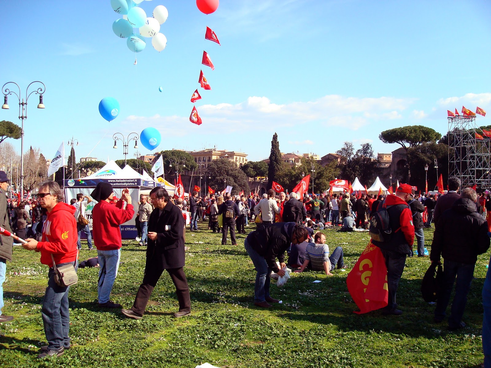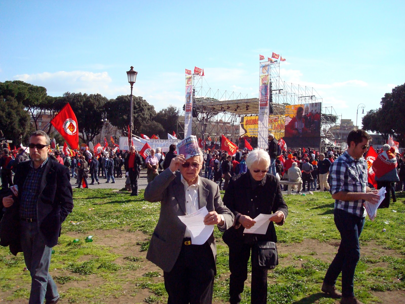 Italian newspapers this morning (as I write this post) show pictures of streams of people filling the streets and walking to Piazza San Giovanni, waving red flags and chanting.
