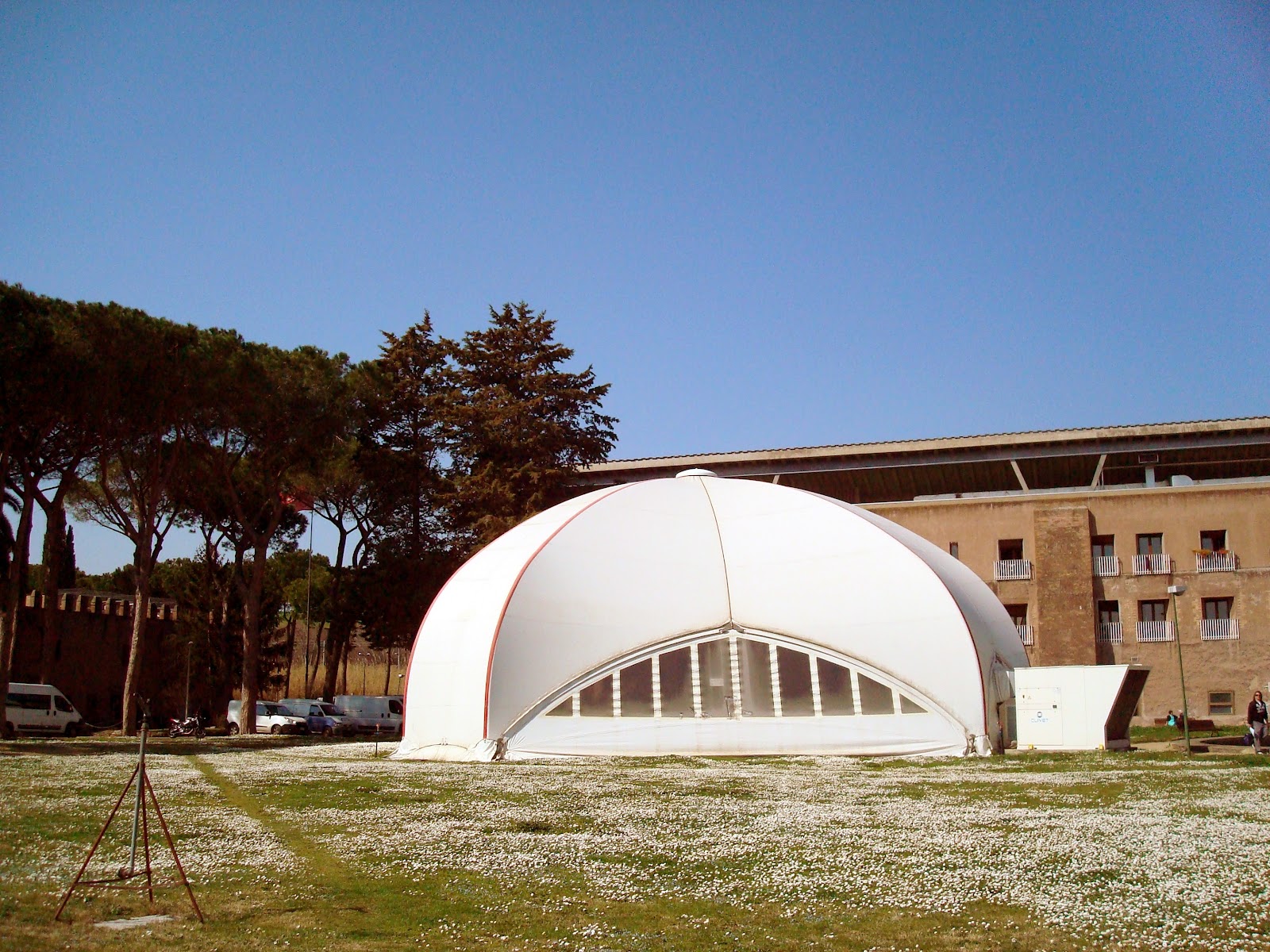 Yes, very modern, with all the rooms looking onto this garden that was filled with white spring flowers when I took the pictures (I took them on 9 March). In fact, because of the requirements of the Italian Belle Arti - the Ministry that acts as a watchdog on the Italian patrimony - permission for additional, permanent buildings are difficult to obtain. As a result, the chapel has been housed in a vast tent. You can see it here: