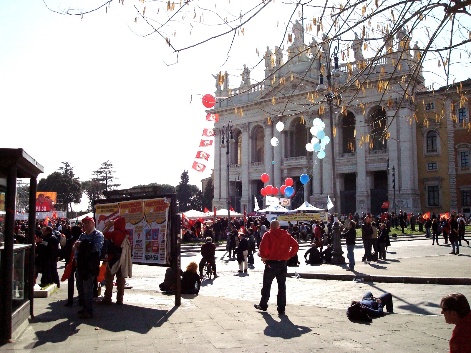 It seems like such a shame to reduce to shambles with garbage (and worse - there are never enough public toilets) a lovely piazza, surely one of the high points in the city for tourists. Perhaps more importantly, San Giovanni is the Church of the Bishop of Rome, and the Bishop is none other than the Pope - hardly an appropriate place for mass protests (considering a hospital is near-by and the noise can be deafening).