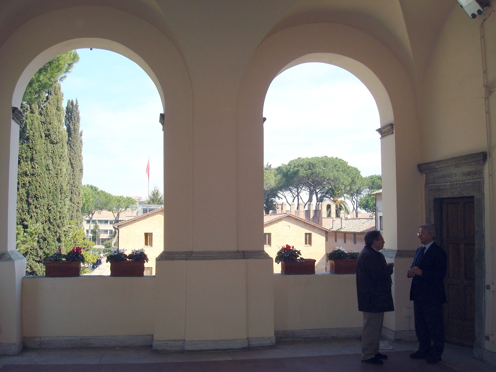 At the end of a series of offices, there's this beautiful loggia (the two people conversing here give you an idea of the size of this loggia - indeed of the whole building):