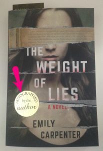 Congratulations to Xandra B., who also happens to be my childhood neighbor (yay randomness!!). Xandra is on my newsletter list, and she won an autographed copy of THE WEIGHT OF LIES by the extraordinary Emily Carpenter as part of my Summer Beach Reads giveaway.
