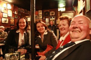 Our new location pushed us closer to our neighbors, a sweet couple from the country who’d come to Dublin for a funeral and were out for a drink with their daughters before heading home the next day. We chatted with the four of them and several others as the musicians tuned up; and soon the pub was filling with more late-night patrons and the sounds of traditional Irish pub songs.