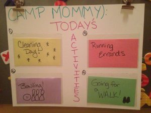 Last week, I made a little “Today’s Activities” poster for the kids with four pockets, and pre-filled a bunch of index cards with stuff I knew we’d be doing (and stuff I want them to do, like cleaning the playroom, reading, math, errands etc.)