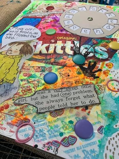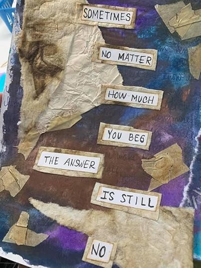 But, I also process deep pain there too. Sometimes my art is the colors of a bruise. Sometimes shades of dripping red with black angry messages from gaping wounds that will not heal. They are not pretty pages, but when I’m done, I feel better. It’s up and out of my body, my head… where it can’t hurt me or others. And I just close the book on them when I’m done or rip them out and throw them away.