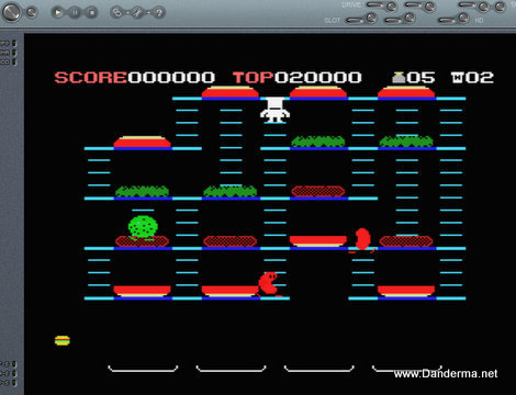 The little chef needs to climb the stairs and walk all over the bun, patty, lettuce, and cheese to drop them into place and make up hamburgers while trying to dodge the killer pickles, sausages, and eggs who want to eat him.