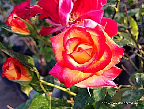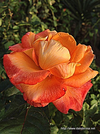 A rose but not in one color! It started of as fuchsia pink in the base, then it gradually changes color into orange, then peach, and ends with a pale orange yellow tone, Ombre style!