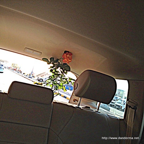 I was so anxious someone would come and take it away. I already named my plant Rosa! I couldn't rest until it was safely in my car truck peeking at me whenever I looked in the rear view mirror. Ladies and gentlemen, meet my new baby: Rosa the Ombre Rose