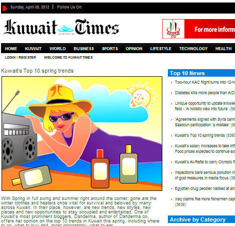 I was asked by Lisa Conrad from Kuwait times to contribute to an article she was writing regarding the anticipated spring trends by giving my humble two cents on the matter. We did it last Friday and lo and behold, it was published on Saturday!