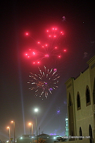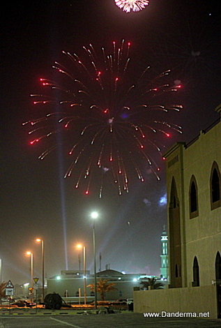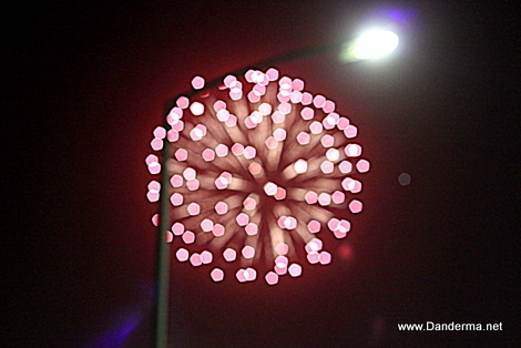 We were sitting outside having tea and enjoying the weather when we suddenly heard a loud bang followed by a flash of light! Pink Girl said she had seen some fireworks from Al-Zahraa Co-op's side -which is near my new apartment- so we both grabbed our cameras and ran to the street. So did the rest of the neighborhood that is. We stood in the street and I took a few shots.