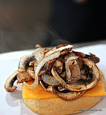First came the lettuce, next came the mushrooms topped with a slice of cheese.