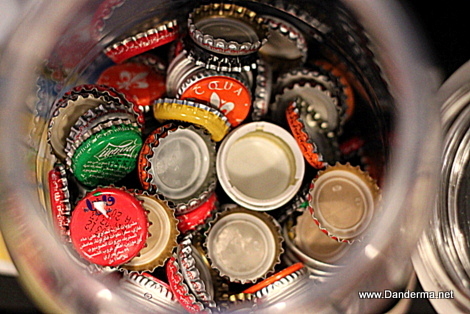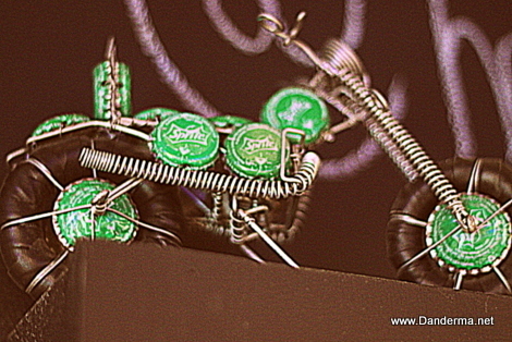 Guess what? There is a jar by the register where the caps of the drinks are placed. These caps are then collected by a company and recycled into models and toys to be sold for charity like the one below. Nice idea mo?