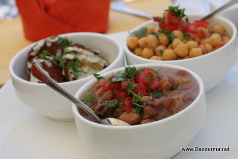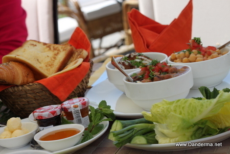 Next came the oriental breakfast. Platters of falafel, fool, and nakhi with a side of fresh veggies.