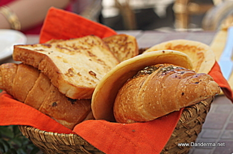The first order to arrive at the table was our continental breakfast. A basket brimming full with croissants, french toast, and pancakes with a side of jam, honey, and butter.