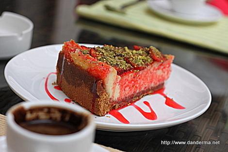 Then we were bombarded with more platters of food! Strawberry Cheesecake.