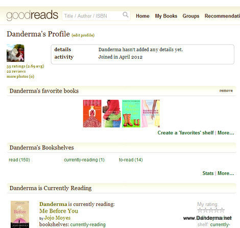 I think you know what I mean if you are a fellow book worm Now if you are interested you can follow me on Good Reads, just search for Danderma