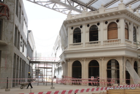 Many of the building facades on the walkway were complete.