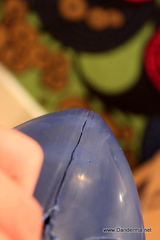 I didn't want to break the chocolate egg violently but I also couldn't locate my knives -or my utensils for that matter- so luckily I managed to find a plastic spoon and used it to try and crack the egg open very gently…