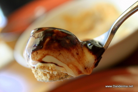 I've tried this dish before when my late mother in law Allah yer7amha made it for us then gave us the recipe for it. Chubby biscuit and cream balls swimming in a lovely cream and chocolate bath. Even though we know how to make them -not that easy by the way- we never tasted ones before that were this good. Really good. A Pièce de résistance of the meal good. Needless to say no balls were present after 5 minutes.