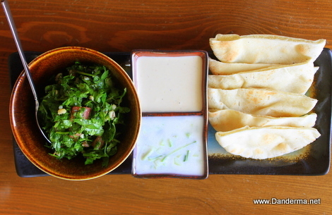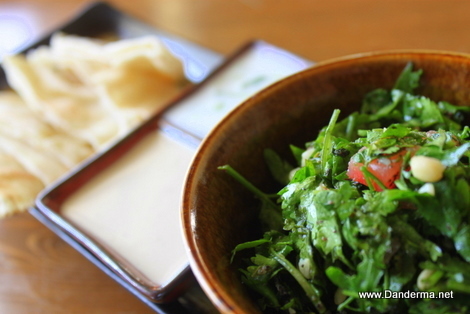 Then as we were flipping through the menu a complimentry tray of fresh Tabbouleh with mini pita bread pockets and a Tzatziki (Yogurt with cucumbers) and Tahina sauce were presented to us.