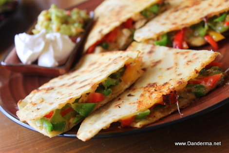Freshly made guacamole and sour cream accompanied the Quesadillas. Really good!