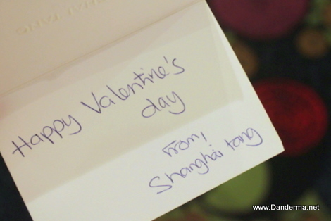I came home yesterday for another surprise: a Valentine's day gift from Shanghai Tang in their signature pink and green bag!