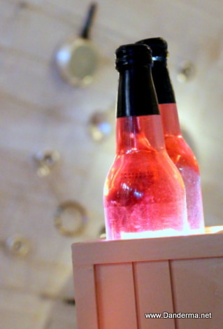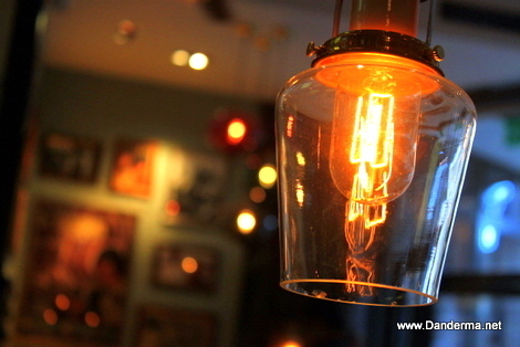 The thing that sticks out the most in the decor is the lights scattered around everywhere, hanging from cords on the tables. Reminds me of something that I cannot place right now. They are lovely!