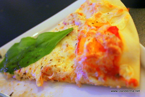 There was two kinds of pizzas: one Margarita and one with meat. I had a slice of Margarita.