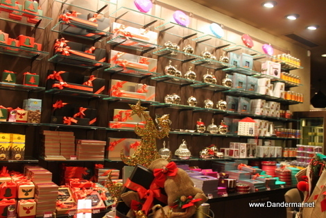 There is an entire wall of boxes goods, silverware, and gift ideas.