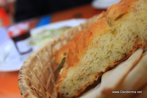 The basket came with a side of butter and raspberry jam. The toast was pillow-soft, the foccacia strips were tasty. We almost ate the entire basket before out breakfast came.