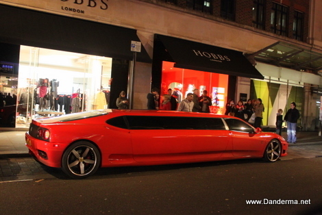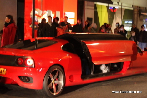 That Ferrari revved its noisy engine and went away. Why would anyone buy a Limousine that is a Ferrari is beyond me. Didn't even think it was possible. I wonder how much it costs?